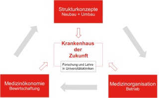 Bei der Erarbeitung des Betriebskonzeptes wird sowohl die Verbindung zwischen Forschung und Lehre und Krankenversorgung als auch die Strukturen und Funktionen innerhalb der Forschung und Lehre betrachtet.